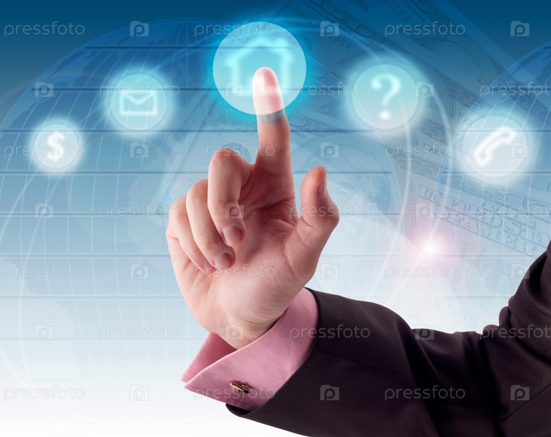 Сенсорный экран и рука пользователя, нажимающего кнопку