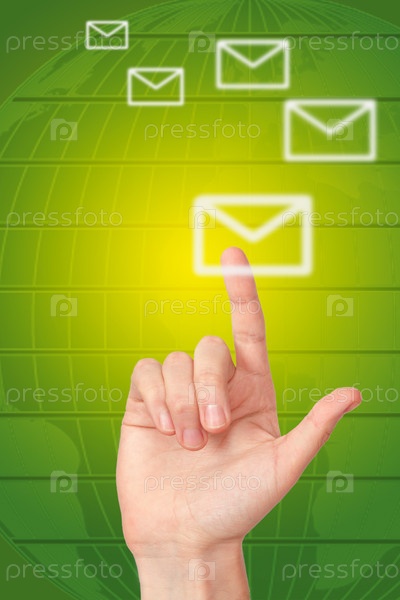 Сенсорный экран и рука пользователя, нажимающего кнопку