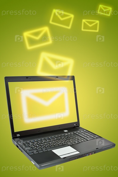 Ноутбук с иконкой "сообщение", метафора интернет-коммуникации