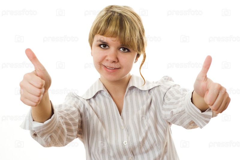 Улыбающаяся успешная девушка на белом фоне