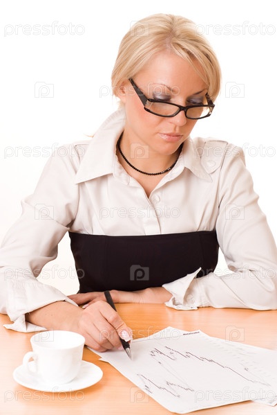 Деловая женщина работает, белый фон