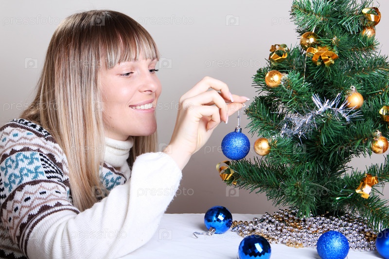 Женщина украшает елку