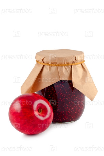 Яблоко и варенье на белом фоне