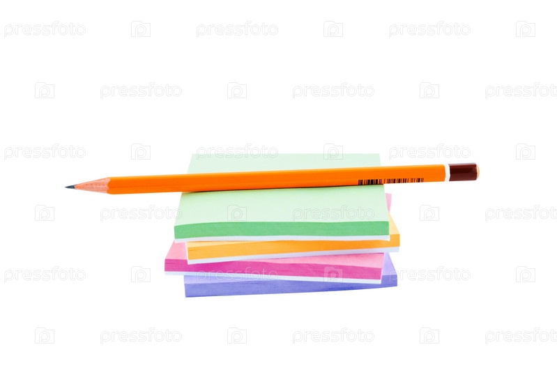Карандаш на стикерах крупным планом