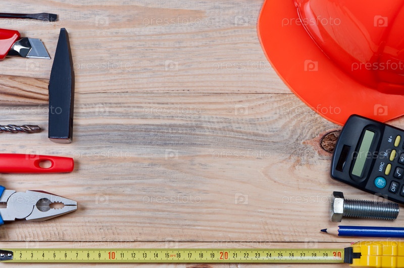 Строительные инструменты на деревянной поверхности