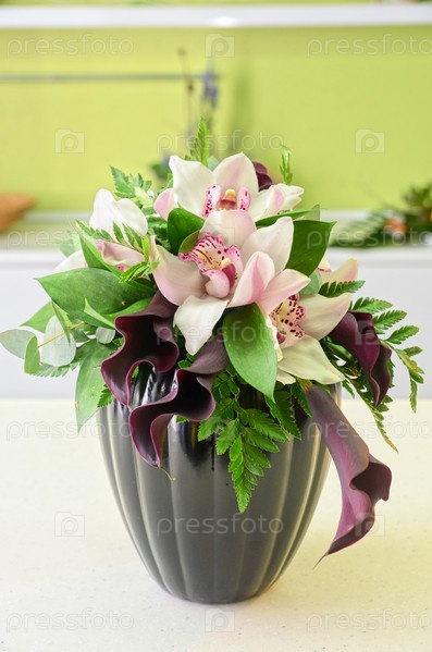 Свадебный букет в вазе на столе