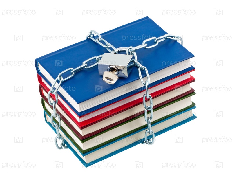 Книги под замком на белом фоне