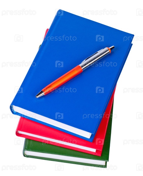 Книги и ручка на белом фоне