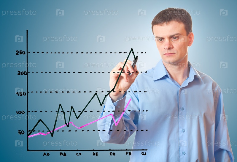 Молодой бизнесмен рисует график