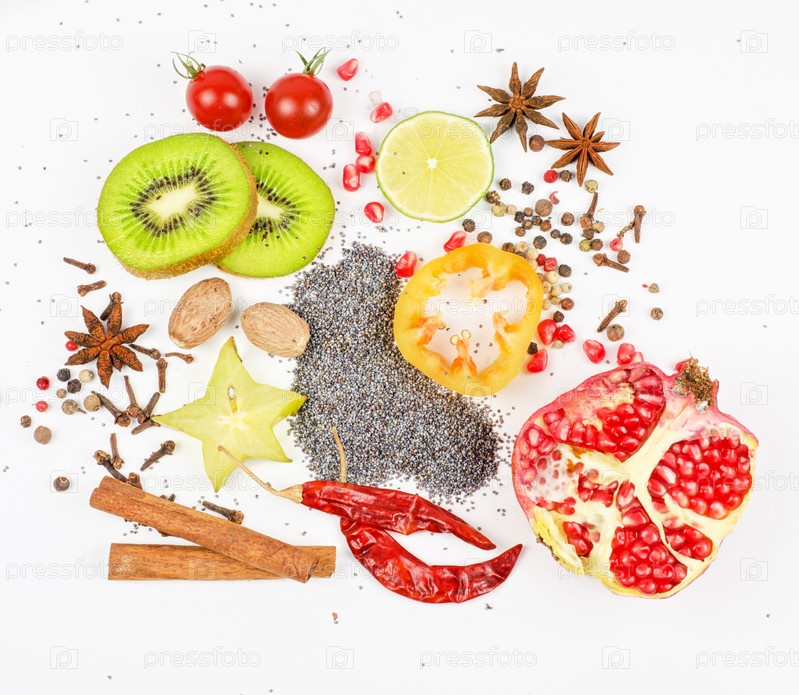 Красочные специи на белом фоне