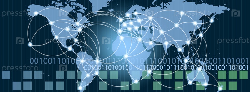 Изображение карты мира с точками подключения к сети