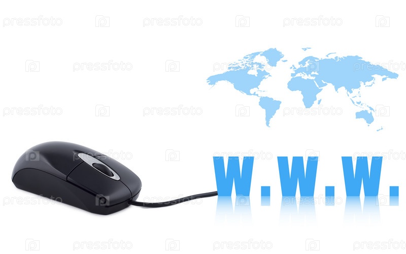 Компьютерная мышь и аббревиатура 'w.w.w'. на белом фоне