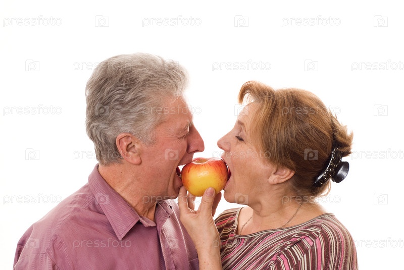 Счастливая семейная пара с яблоком