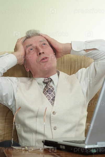 Разочарованный бизнесмен с ноутбуком