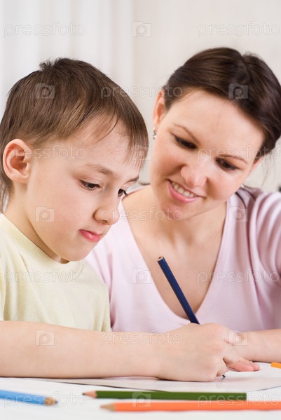 Мать с сыном рисуют