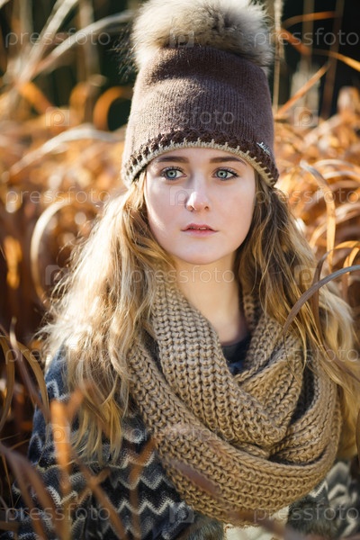 Молодая девушка в сухой траве