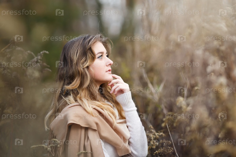 Молодая девушка в сухой траве