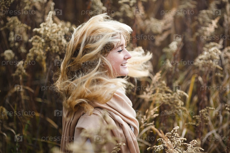 Молодая девушка в сухой траве