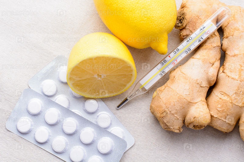 Лимон, имбирь, термометр