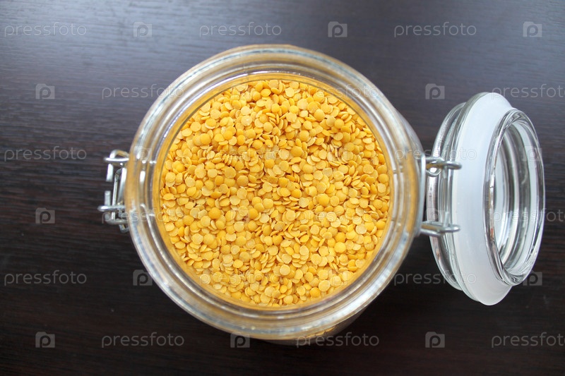 Желтая чечевица в стеклянной банке