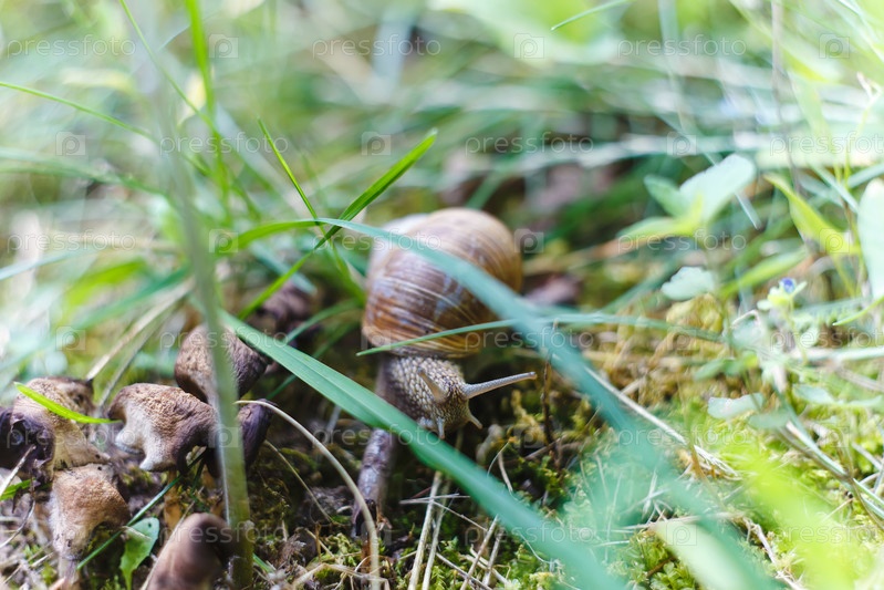 Улитка ползет в лесу