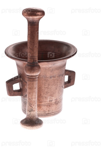 Старинные пест и ступа на белом фоне