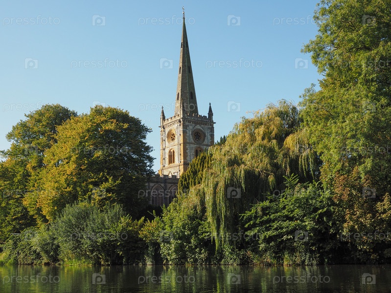 Церкви Святой Троицы, видно из реки Эйвон в Стратфорд-на-Эйвоне, Великобритания