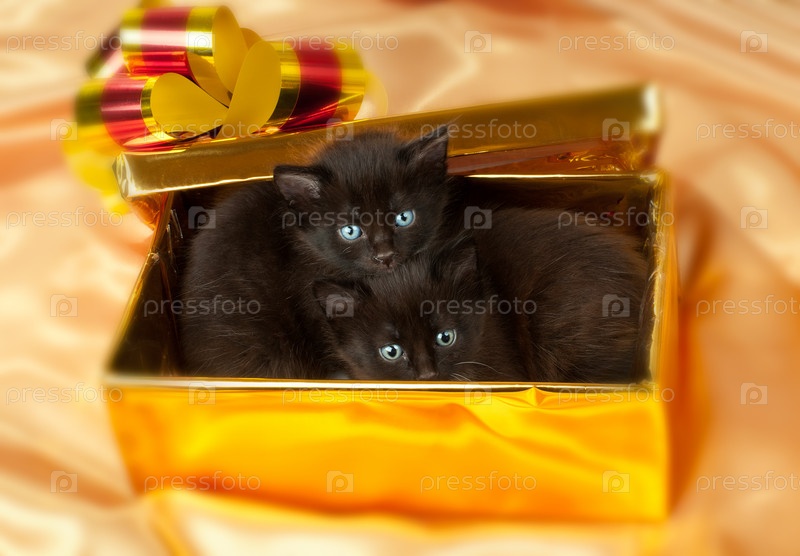 Маленькие котята в коробке