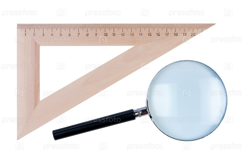 Линейка и лупа, изолированы на белом фоне