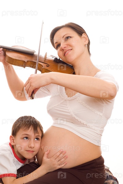 Беременная женщина, играющая на скрипке, с сыном