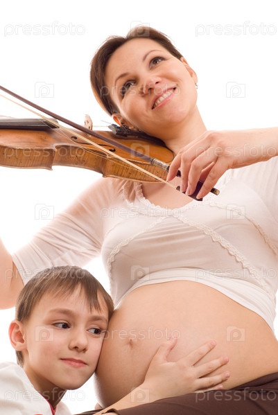 Беременная женщина, играющая на скрипке, с сыном