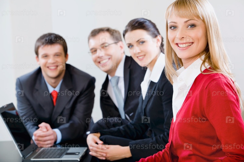 Портрет успешных специалистов, собравшихся вместе для обсуждения новой стратегии
