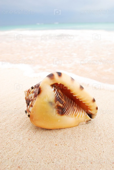 Ракушка, лежащая на пляже Карибского моря