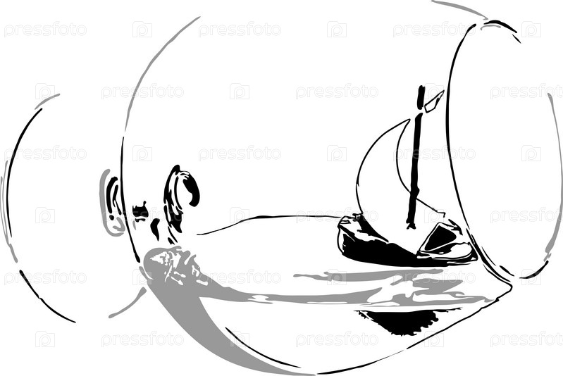 Корабль в бокале на белом фоне