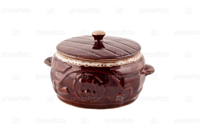 Керамическая кастрюля на белом фоне