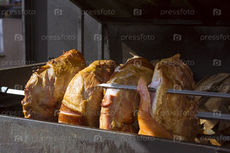 Свинина на гриле на рынке в Старом городе Прага, Чешская Республика