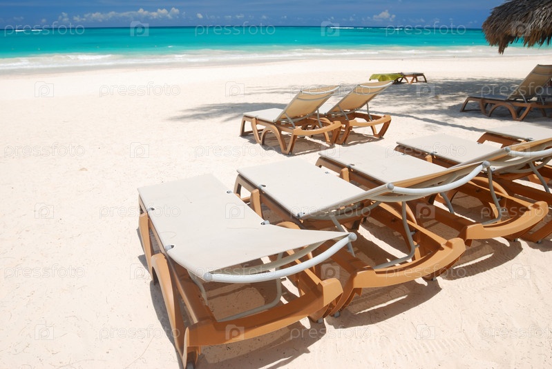 Шезлонги на песчаном пляже острова Гаити