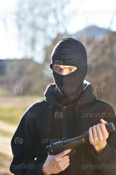 Преступник в маске с пистолетом