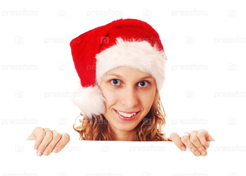Улыбающаяся девушка в новогоднем колпаке