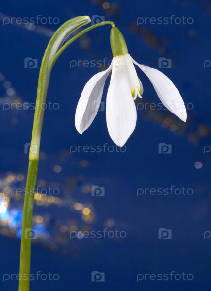 Подснежник на синем фоне