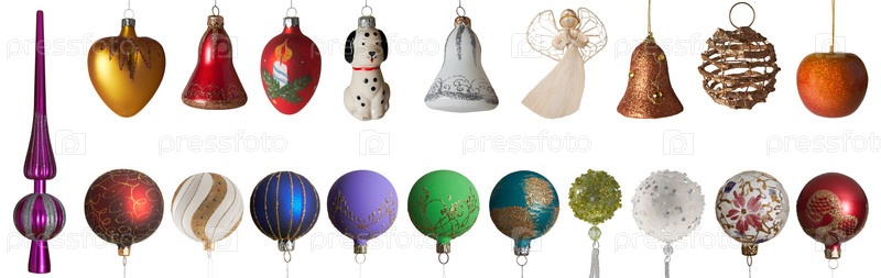 Новогодние игрушки на белом фоне