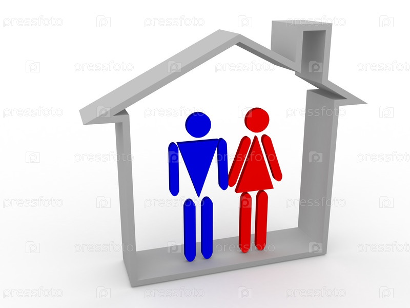 Символическая семейная пара в стенах дома на белом фоне