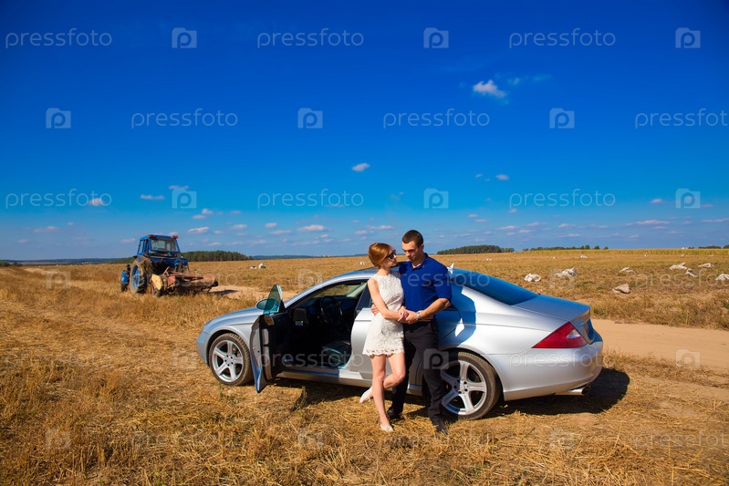 Влюбленная пара около автомобиля