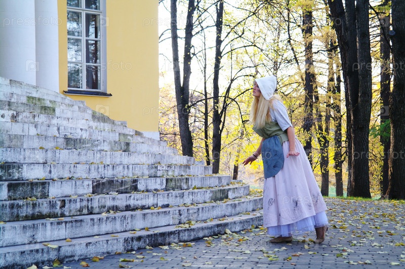 Девушка-золушка возле старинной усадьбы