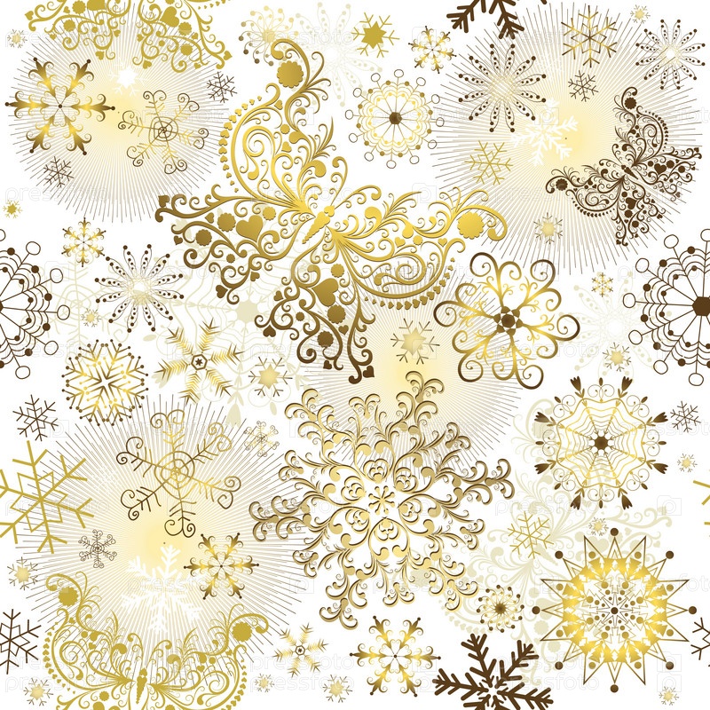 Рождественский шаблон с золотыми снежинками и бабочками