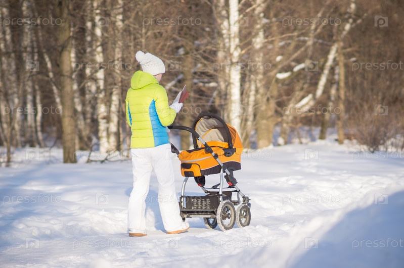 Девушка с коляской в парке