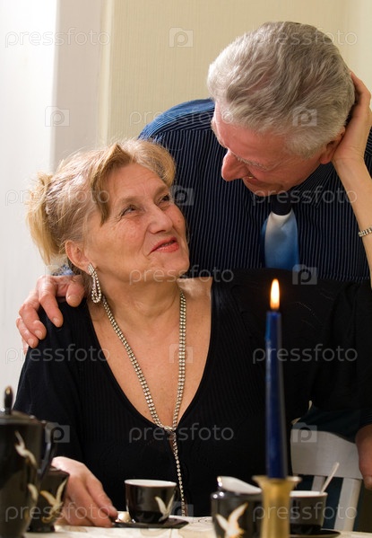 Пожилая пара в праздничной обстановке