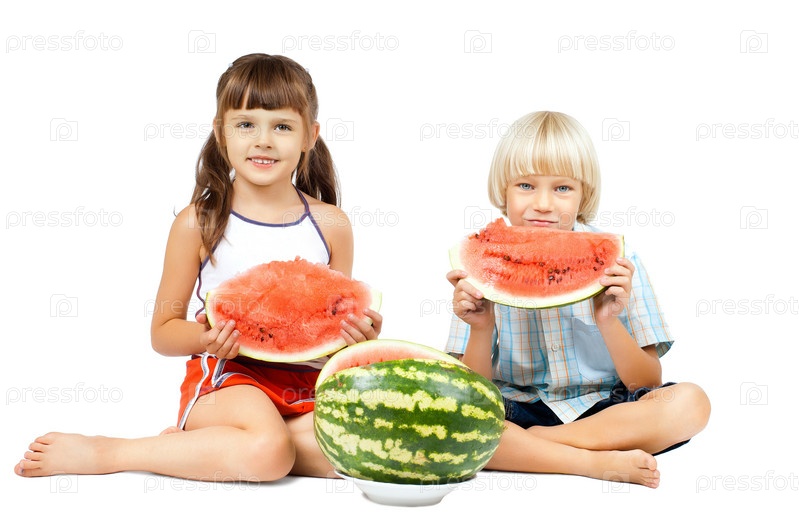 Дети едят арбуз