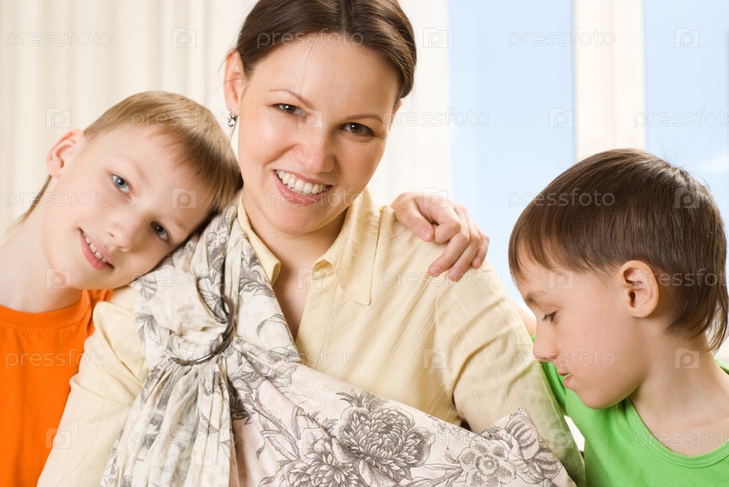 Счастливые мать и дети