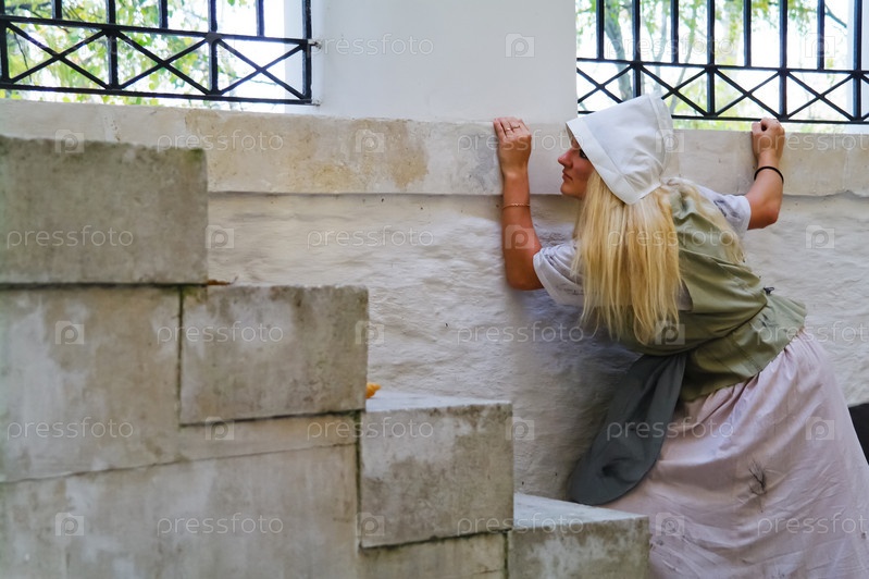 Девушка-золушка возле усадьбы